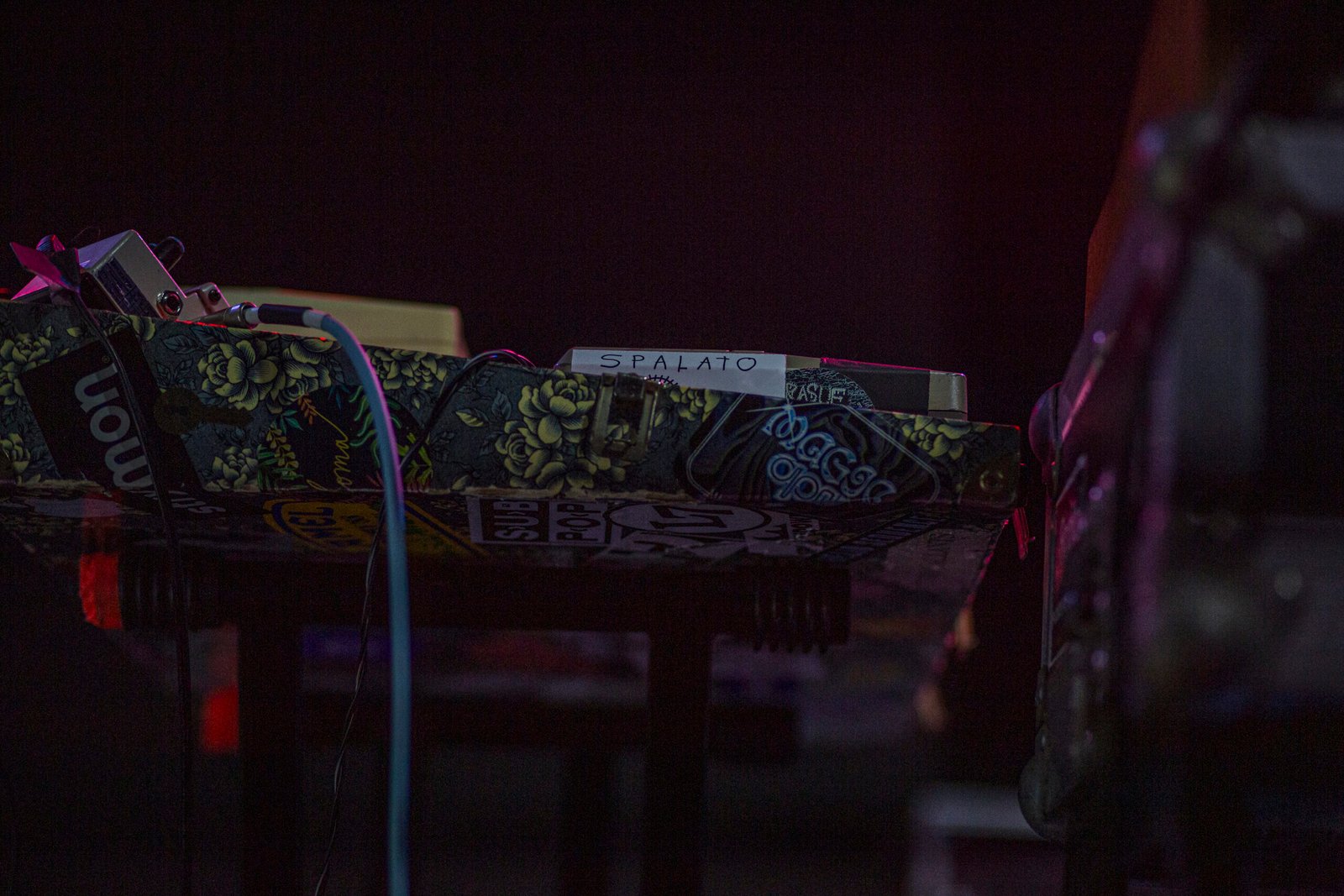 Perché la nostalgia è contagiosa, intramontabile. Anzi, si ostina a crescere con il passare del tempo. Così, come in pellegrinaggio verso un luogo di culto, dopo un’attesa durata vent’anni l’affezionato pubblico degli Offlaga si accinge lentamente a riempire la sala concerti dell’Hiroshima, per il primo di questo doppio appuntamento. Ad attenderlo c’è un altarino a centro palco, illuminato dall’alto con un riflettore. Un oggetto per (quasi) ogni canzone presente in scaletta compone quello che a tutti gli effetti ha l’aspetto di un totem commemorativo: il modellino di una vecchia Golf, il dizionario della lingua italiana Le Monnier, un albo di Zora la vampira, i già citati dolciumi – il Toblerone e i Tatranky, «ovvero pacchetti tipo Loacker, ma molto più buoni» –, una pantofola marcata De Fonseca, una latta con l’effige di Doraemon e l’immancabile talpa Krtek di peluche che sempre ormai la band si porta appresso, testimone silenzioso del ricordo di Fontanelli.