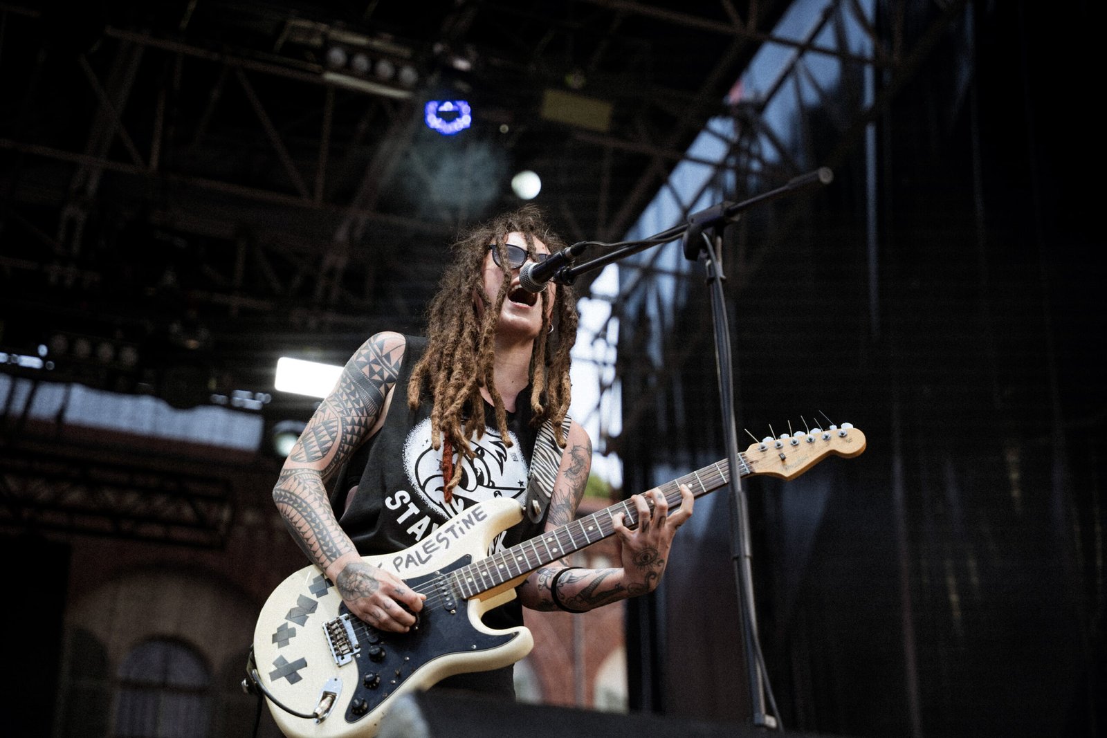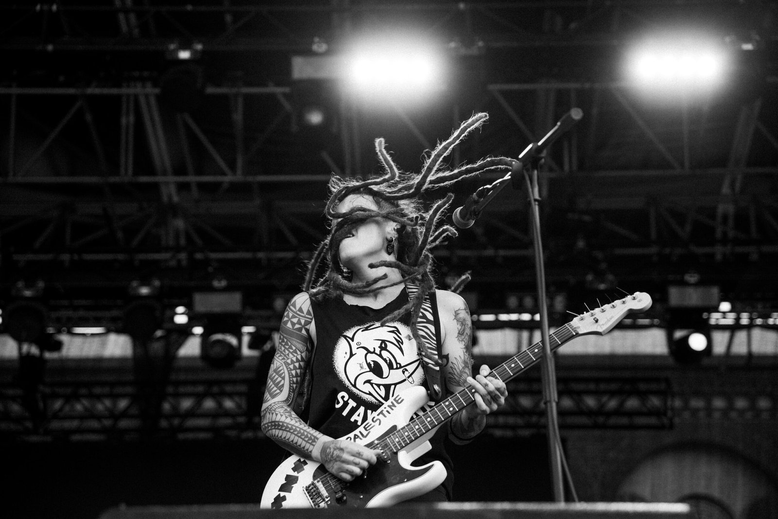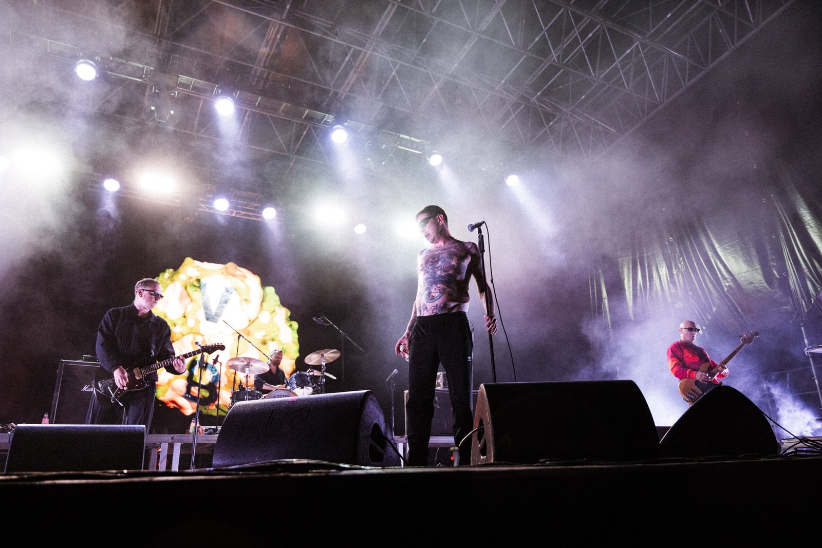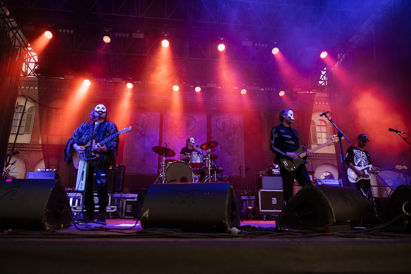 Il filo conduttore della serata è diventato ancora più chiaro quando è stato il turno della band di Davide Toffolo, che si è raccontata attraverso la propria musica a un pubblico affezionatissimo, punteggiato nel pit di maschere funeree e magliette con ossa in bella vista, nel più puro stile del gruppo. Quello dei Tre Allegri Ragazzi Morti è stato un concerto carico di tutti quegli elementi che hanno reso il trio di Pordenone una colonna portante della musica indipendente italiana in oltre trentacinque anni di carriera: testi che, con colori naïf, disegnano scenari in cui il maschile del punk rock viene ribaltato da fragilità ed emozioni. Canzoni che, anche quando risultano un po’ didascaliche, riescono a far arrivare il loro messaggio in modo diretto ed efficace. Se volessimo fare un appunto, forse si potrebbe dire che c’è stata una certa leziosità nel tirare per le lunghe il set con alcuni stratagemmi che il gruppo utilizza da sempre e che iniziano a mostrare qualche segno del tempo. Ma anche per questo gli si continua a volere bene.
