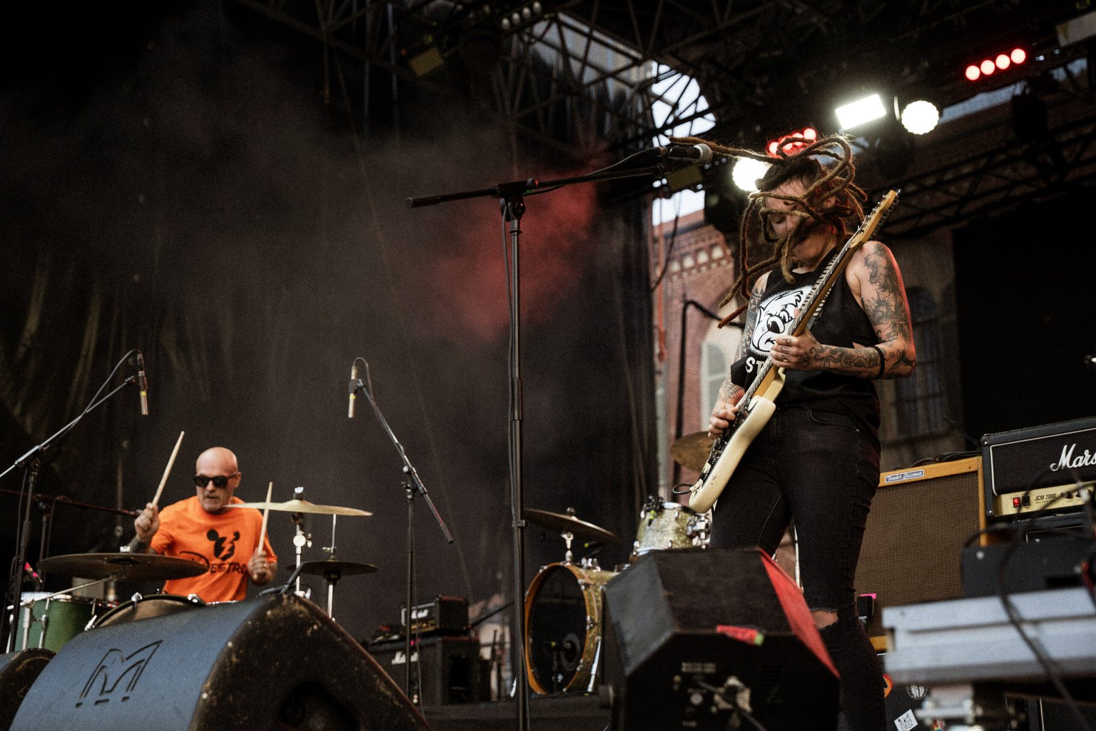 Mettere insieme Tre Allegri Ragazzi Morti e Viagra Boys – affidando l’apertura al duo brianzolo Circus Punk – può apparire una scelta bizzarra: il tentativo di far dialogare mondi piuttosto distanti che, pur condividendo la stella del punk rock, non sembrano avere molte visioni in comune. Ma si sa, l’attitudine punk è fatta anche di improbabilità e imprevisti, del trovare senso nell’inaspettato, di serendipie che ribaltano le prospettive. Nel caso specifico, si è trattato di ragionare sulla decostruzione del genere, sessuale e musicale, in un’ottica straordinariamente contemporanea. Punti di partenza all’apparenza lontani, ma che nel concreto finiscono per incontrarsi. Partendo dal principio, con i già citati Circus Punk, il loro ibrido scheletrico e minimale tra blues e punk – chitarra, voce e batteria, niente di più – ha gettato le basi per il resto della serata: la morale è collettiva e passa anche, e soprattutto, dalla messa in discussione dei ruoli maschili e femminili nel suono, sovvertiti e ridiscussi senza troppi fronzoli ma andando dritti al punto.
