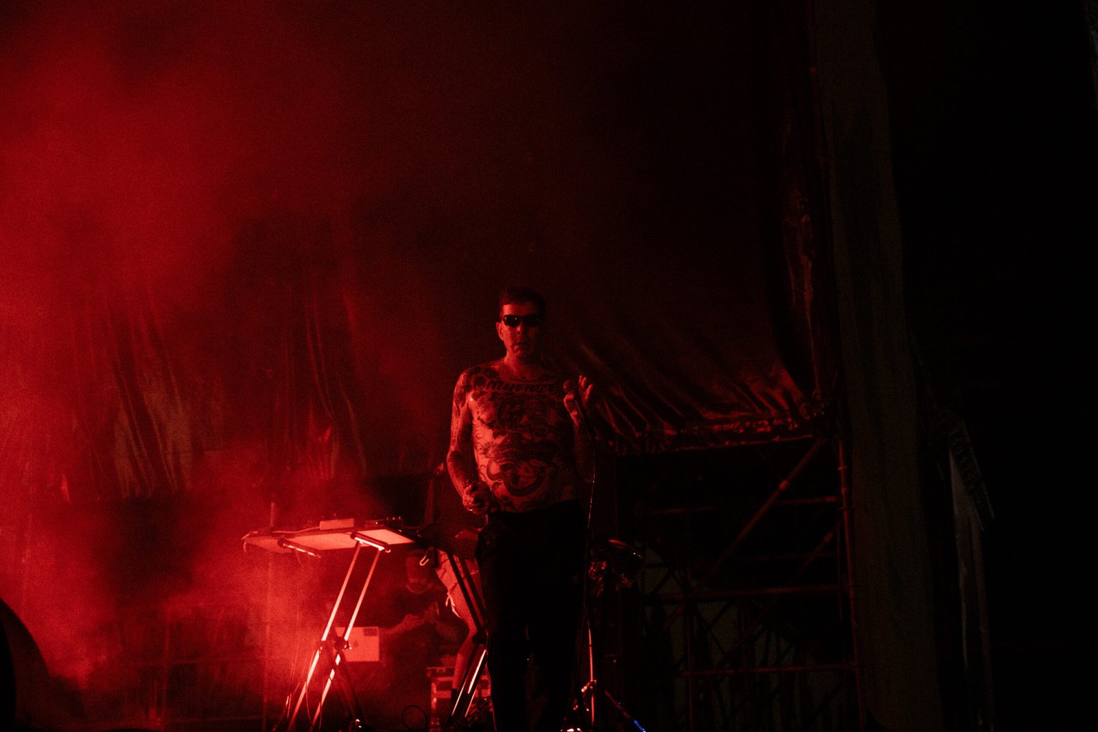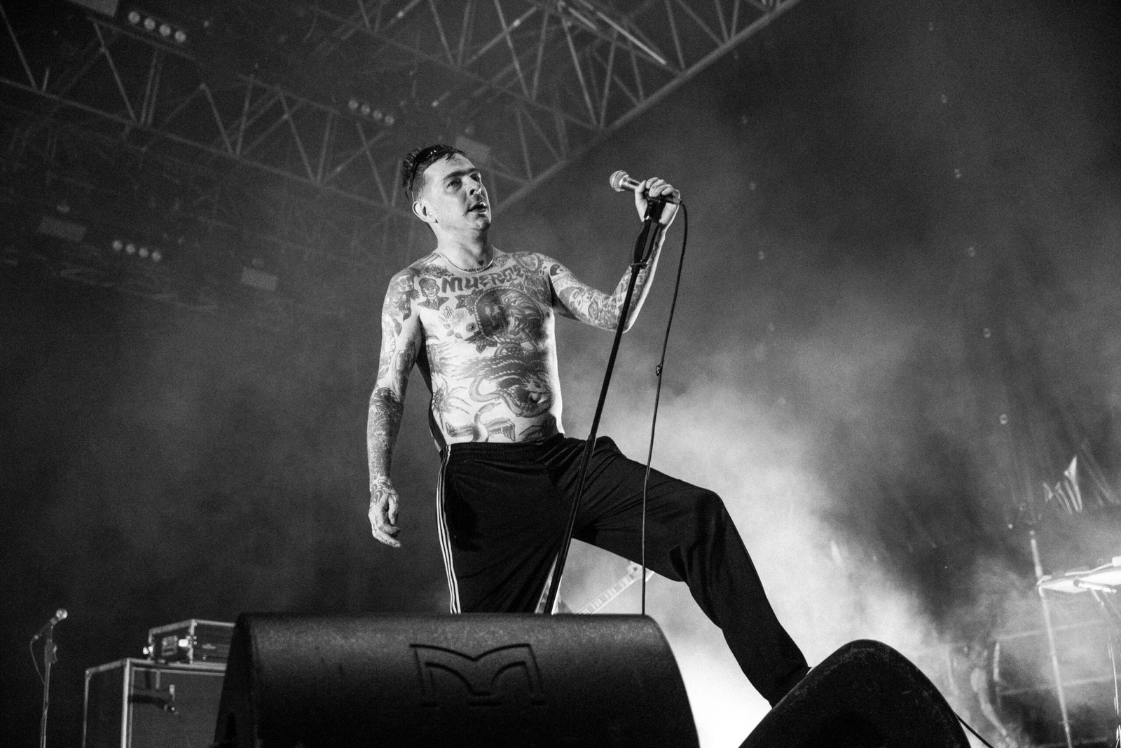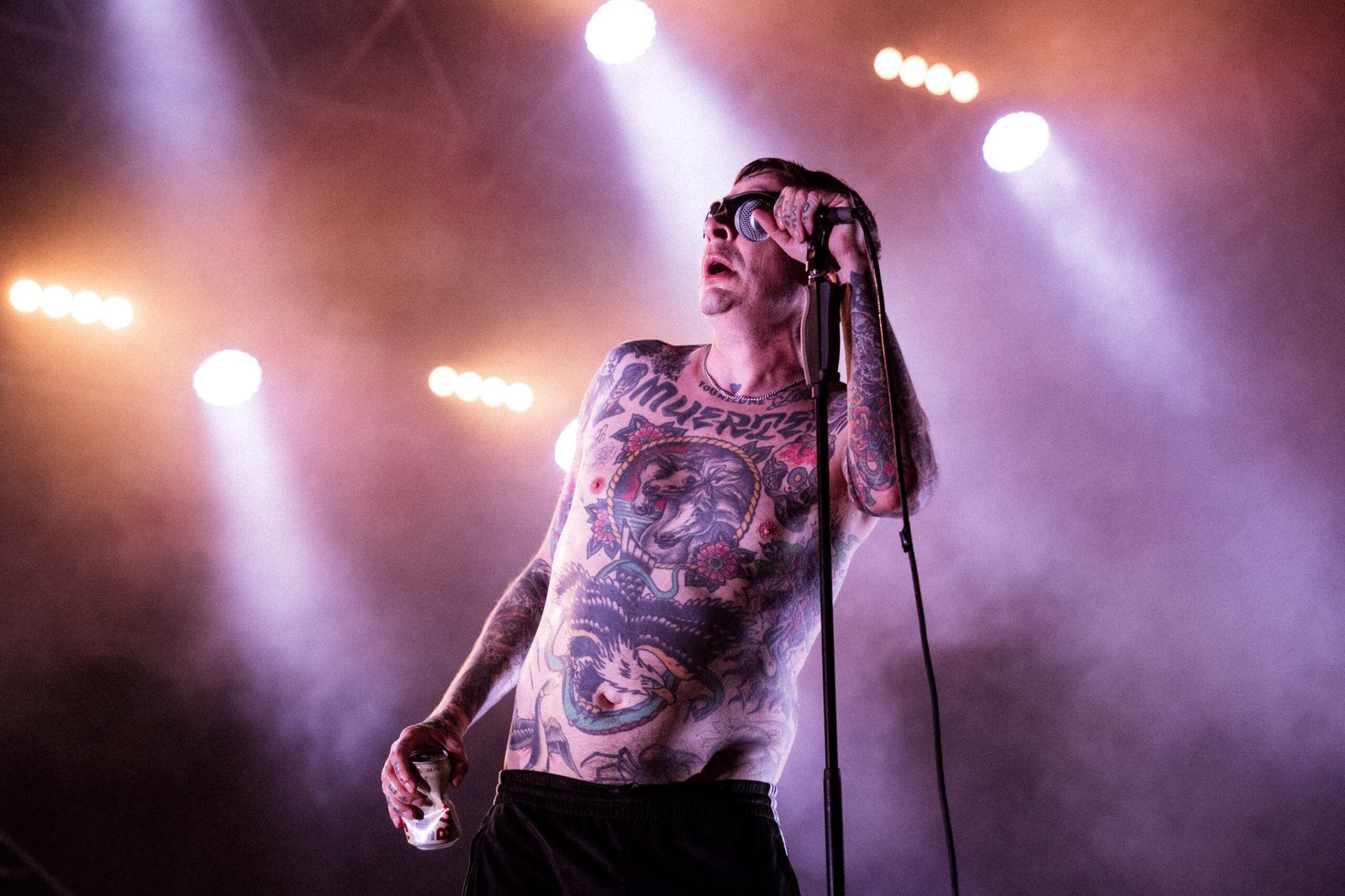 A chiudere quella che è sembrata, forse per davvero, l’unica serata che meritava il sottotitolo di festival in quella che è, a conti fatti, una – seppur ottima e ben costruita – rassegna di concerti, è arrivato il secondo dei nomi proposti come co-headliner. I Viagra Boys sono saliti sul palco delle Lavanderie a Vapore dopo una serrata selezione di UK garage e dubstep che, lungi dall’essere fuori luogo, ha contribuito a creare un’atmosfera elettrica, sempre sul punto di esplodere. Ed è proprio quello che è successo: l’ensemble svedese ha fatto detonare il pubblico con la sua pungente ironia, che prende di mira le convinzioni patriarcali e reazionarie radicate in ogni maschio occidentale e bianco. Discutere delle proprie paranoie contemporanee con una sana dose di cazzeggio, ma senza dimenticare responsabilità e obiettivi: è così che le caustiche frasi scritte e pronunciate da un Sebastian Murphy particolarmente in forma – nonostante qualche defezione e dimenticanza, abilmente compensate da una presenza scenica ipnotica e magnetica – si sono abbattute sul pubblico.
