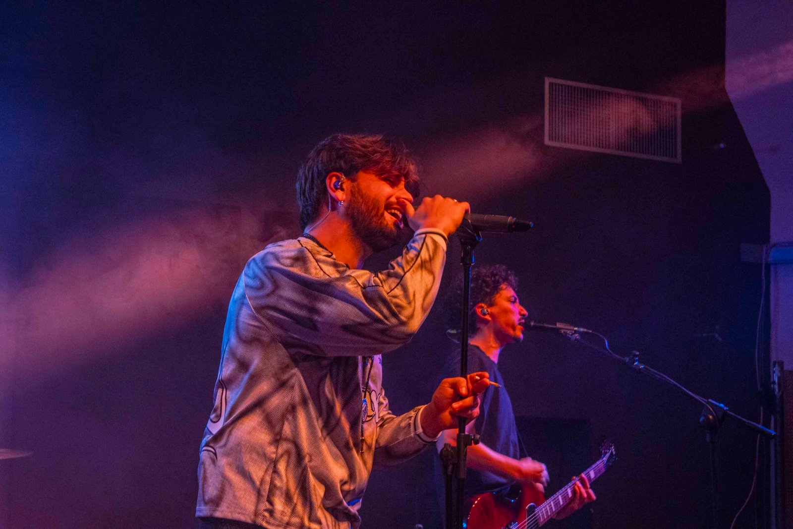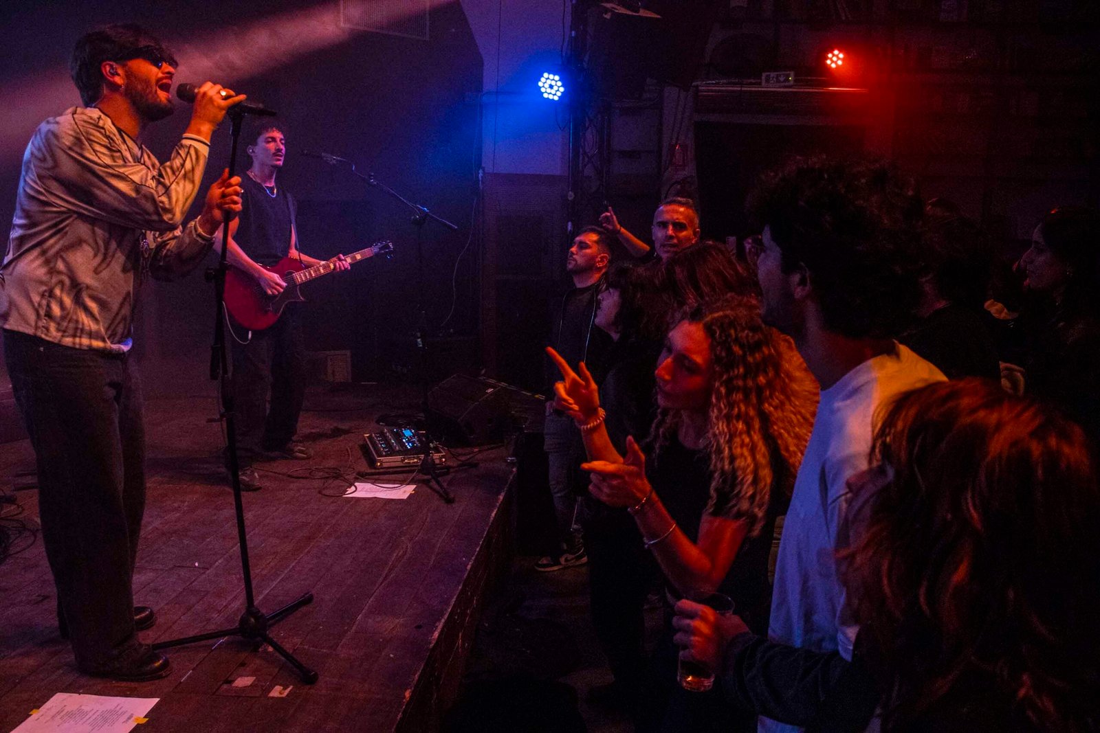 Dopo una breve pausa tecnica, il palco ha iniziato a popolarsi. Sono entrati in scena prima Federico – il batterista – ed Enzo, il bassista; poi Giuseppe – chitarrista del duo – e infine Vito, che si è fatto attendere, entrando con un fare da rockstar navigata. Ed è bastato l’attacco del primo brano per trasformare il pubblico in un’onda compatta sotto al palco: chi era lì non solo conosceva le canzoni, ma le cantava a squarciagola e le ballava con un entusiasmo contagioso.